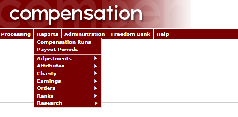 Drillable links to Unofficial and Official Compensation Runs. Detailed information provided for Qualifications, Bonus Ranks, and Bonus Types per Commission Run